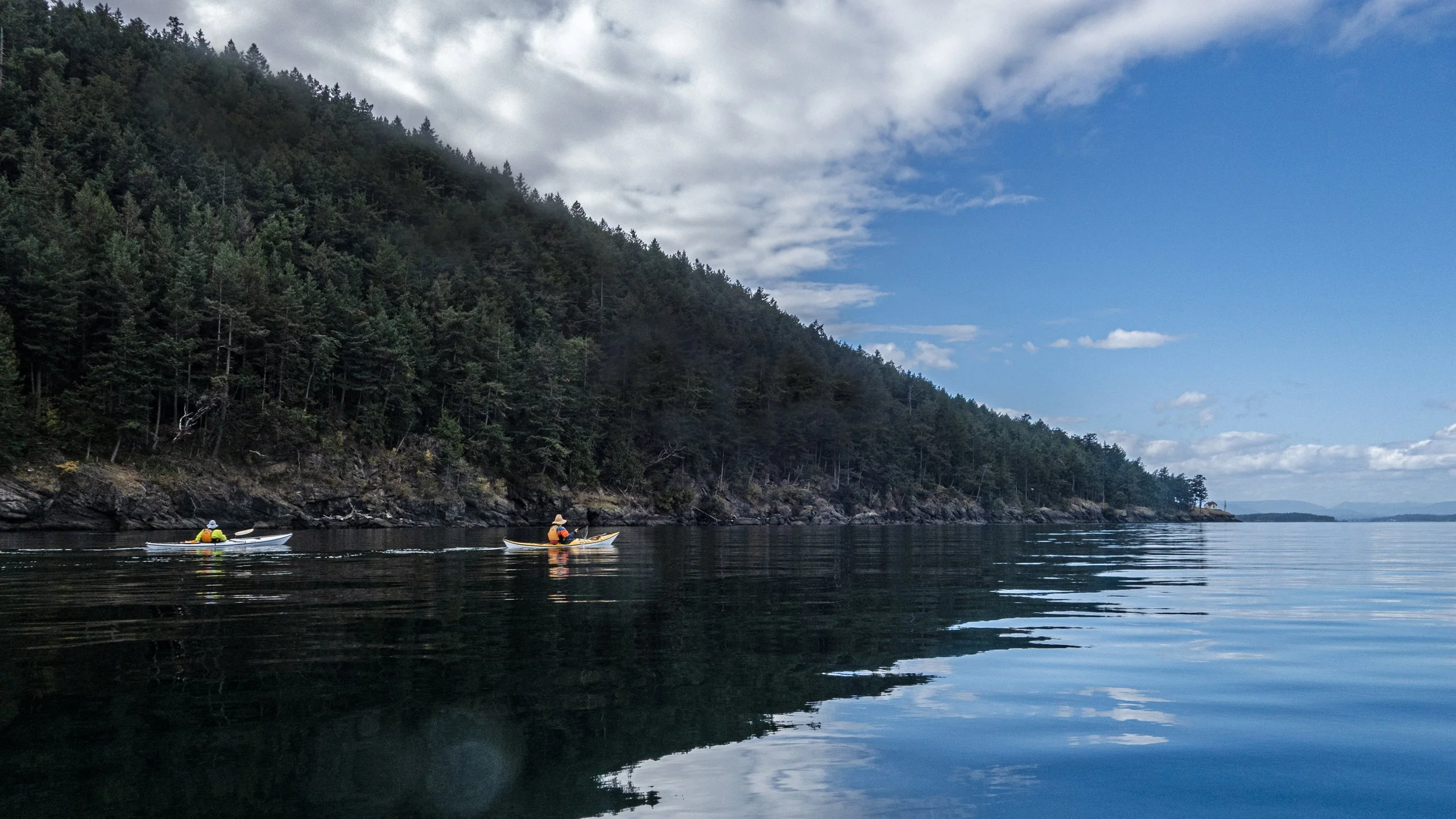 My great friends and paddling companions for decades, Byron Ricks and Ted Steudel, put blades to water with me this past week for a re-boot of a similar trip 24 years ago. On that outing, over three days immediately following the September 11 attacks on NYC, we did a circumnav of the main islands of the San Juans. Fast forward to this past Monday through Friday when we expanded the circle to include all the islands and rocks of the archipelago. Hoping to string together days of favorable wind, weather and currents in October was clearly a somewhat audacious plan, but somehow we lucked out. Over about 106 miles of paddling we touched on some of the wildest corners of the San Juans and had a, well, grand adventure. Here are a few photos from the trip.